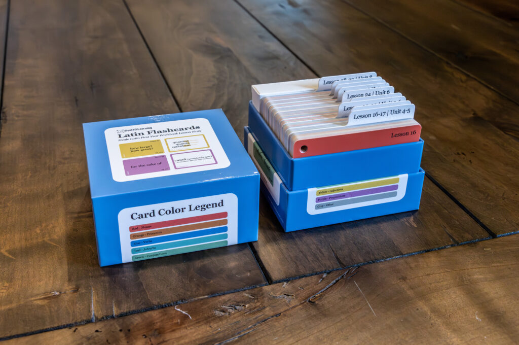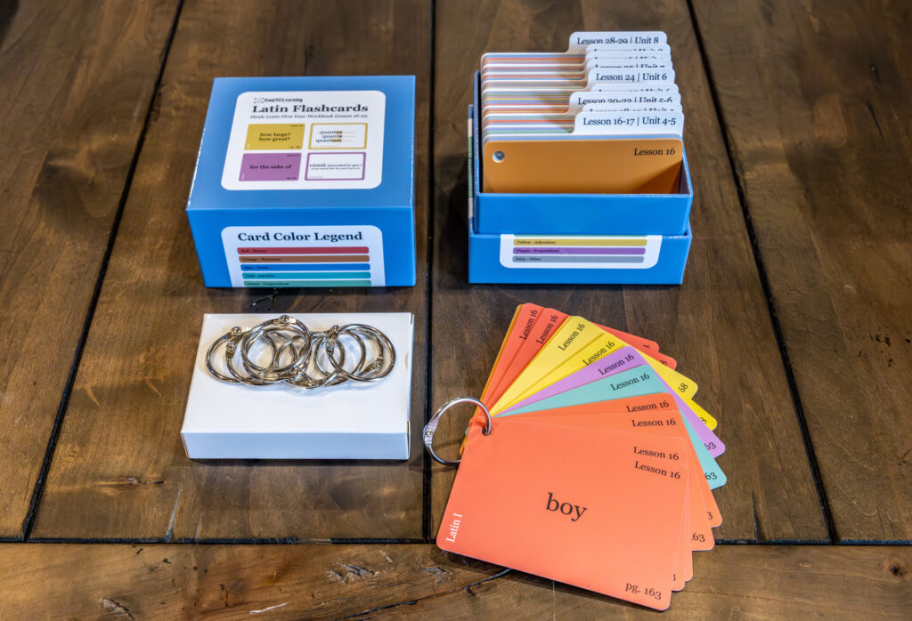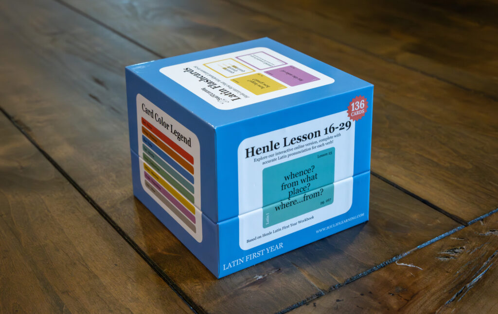 This flashcard set, based on Henle Latin First Year by Robert J. Henle, covers Units 4–6 (Lessons 15–29) vocabulary, with color-coded cards that include lesson numbers, gender, declension, and page references. Perfect for homeschooling students in the Classical Conversations Challenge B program or anyone learning Latin, these durable, laminated flashcards are water-resistant and designed for daily use. They come with a sturdy storage box and binder rings for easy organization and on-the-go learning, combining practicality and longevity.