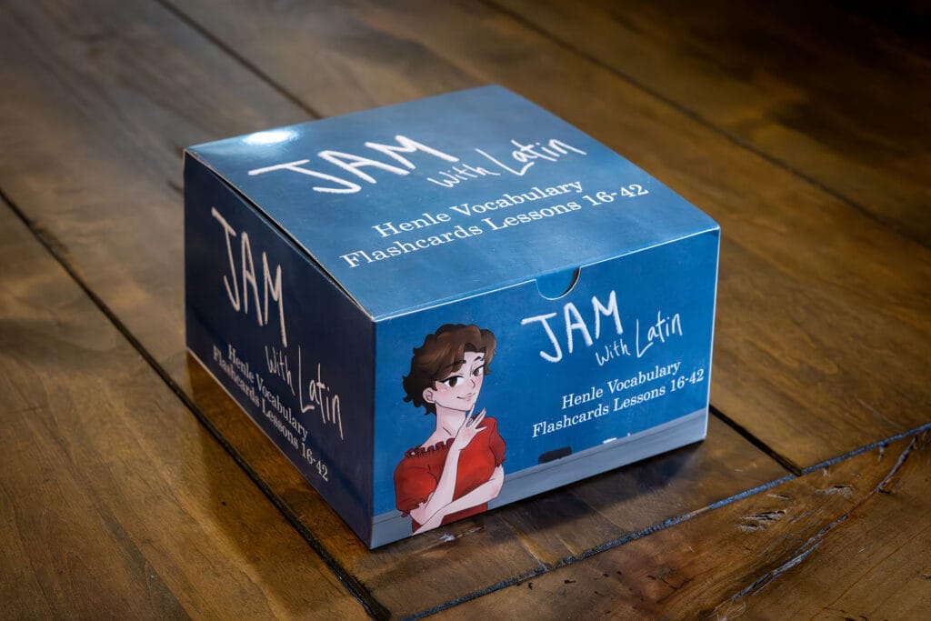 These Henle Latin Lessons 16–42 flashcards feature a picture on the front of each card to cue the vocabulary word. On the back, you’ll find the English meaning along with the noun and verb stems.