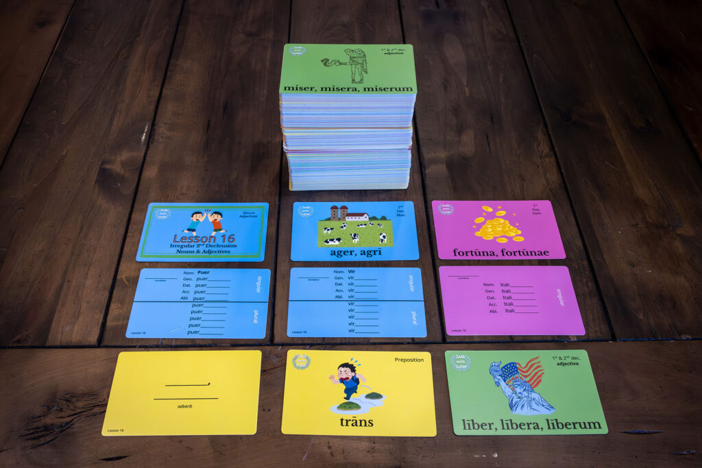 Each deck includes 301 cards, making it a comprehensive and vital tool for success in Henle Latin Lessons 16–42.